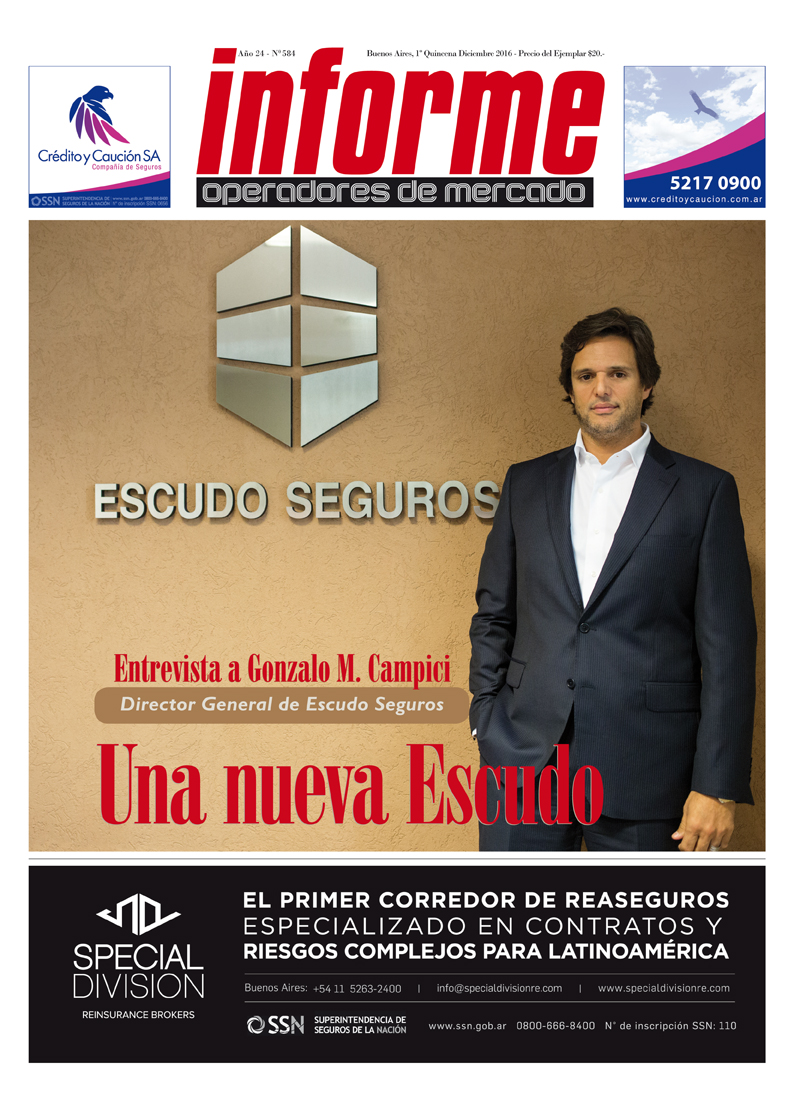 Con un aporte de capital de 172 millones de pesos realizado por SEFINAR S.A., Gonzalo Campici -presidente y accionista de la firma- y su equipo de trabajo desembarcaron en Escudo Seguros para llevar adelante el gerenciamiento y control de la compañía. De esta manera, a la amplia trayectoria de la aseguradora suman su expertise financiero, ya que anteriormente fueron asesores de finanzas en otras compañías de seguros. Más allá del valor económico del aporte, que Escudo necesitaba para equilibrar su balance, el valor agregado consiste en el gerenciamiento, los equipos, renovar los circuitos, así como también, profesionalizar y modernizar a la aseguradora. En diálogo exclusivo con Informe Operadores de Mercado, se presenta la «nueva Escudo».