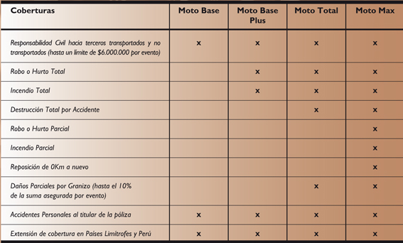 En general, las coberturas de RC son las más elegidas por el cliente, mientras que para Motos de mayor valor, en general conocidas como Alta Gama, la cobertura es más sofisticada y completa, siendo las B y C las apropiadas para este segmento».