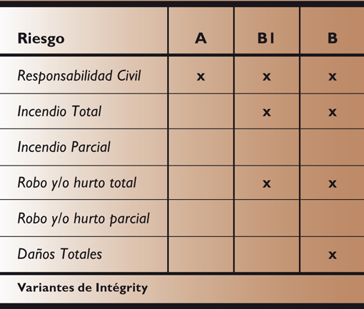 Las variantes de Intégrity se resumen en el siguiente cuadro: