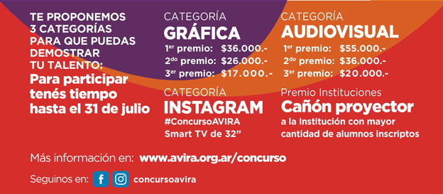 AVIRA, Asociación Civil de Aseguradores de Vida y Retiro de la República Argentina, anuncia el lanzamiento de la 6ta edición del Concurso “Generando Conciencia Aseguradora”. El certamen que convoca a estudiantes de carreras de comunicación, publicidad, fotografía, diseño, cine y artes en general de universidades públicas y privadas del país, así como también profesionales y/o aficionados, invita a desarrollar piezas comunicativas tanto sobre seguros de vida como de retiro, que ayuden a generar conciencia aseguradora. Los trabajos se recibirán hasta 31 de julio y se entregarán $240.000 en premios.