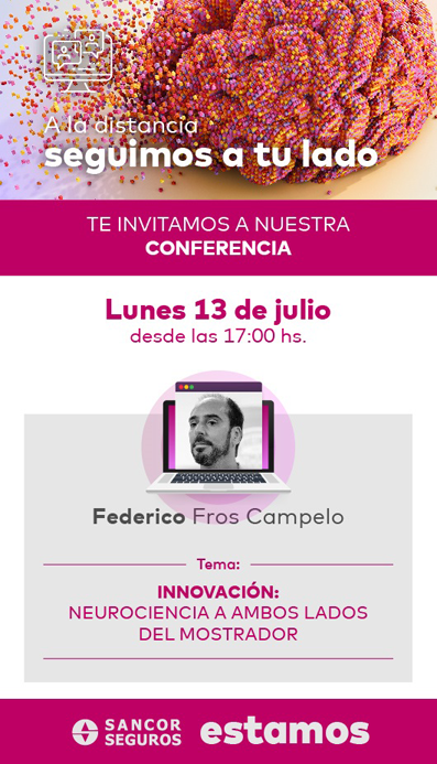 Para este lunes 13 de julio, la Aseguradora invitó a sus PAS a un webinario llamado “Innovación: Neurociencia a ambos lados del mostrador”, durante la cual se abordará de qué manera esta disciplina puede aplicarse al mundo de los negocios, tanto del lado de la venta como de los clientes. La disertación estará a cargo de Federico Fros Campelo, Ingeniero Industrial con un Máster Científico en Dirección de Proyectos Estratégicos, profesor universitario y autor de reconocidos libros como “El Cerebro del Consumo – ¿Qué nos venden y por qué compramos?” y “Mapas Emocionales – Como llegamos a sentir lo que sentimos”.