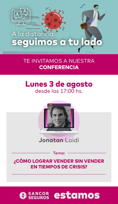 Las crisis, fundamentalmente las económicas, son épocas complejas para quienes trabajan en áreas comerciales, porque los hábitos de las personas cambian y la compra de nuevos productos o servicios cae varios lugares en la lista de prioridades. Con eso en mente, Sancor Seguros convocó a sus Productores Asesores a una charla virtual titulada precisamente “¿Cómo lograr vender sin vender en tiempos de crisis?”, que tendrá lugar el lunes 3 de agosto.