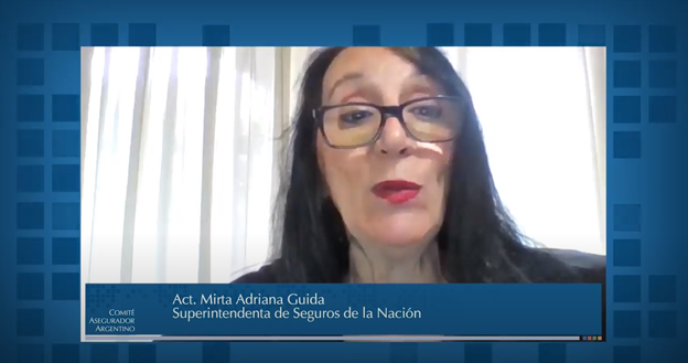 A continuación, la Act. Mirta Adriana Guida, Superintendenta de Seguros de la Nación, señaló: «El momento histórico en el que me ha tocado ejercer la tarea de Superintendenta era inimaginable. Nuestra actividad, que se especializa en medir y calcular riesgos, se encuentra hoy como toda la sociedad, enfrentada con una pandemia imposible de predecir y cuyo costo por el momento es difícil de calcular.