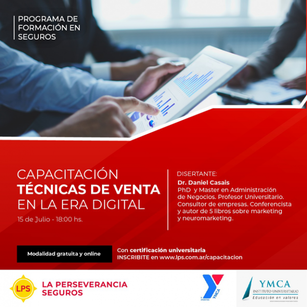 La Perseverancia Seguros -compañía líder en el país, con más de 115 años de trayectoria- continuando con el Programa de Formación en Seguros, el jueves 15 Julio a las 18hs llevará a cabo el quinto encuentro titulado “Técnicas de ventas en la era digital”.
