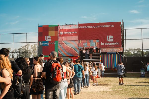 En ese camino, La Segunda Seguros viene apostando fuerte al vínculo con las nuevas audiencias. En el Festival Bandera, la marca sorprendió con un stand de dos pisos que combinó experiencia y creatividad: terrazas para disfrutar la vista, un túnel inmersivo para jugar, un artista pintando un mural en vivo y espacios donde el público pudo sublimar sus propias bandanas y pilusos.