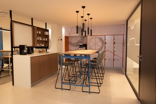 La nueva oficina cuenta además con tecnología de última generación y un diseño moderno, versátil y elegante. Los ambientes, bañados por luz natural, ofrecen un entorno cálido y luminoso, contribuyendo también al ahorro energético gracias a la optimización de la iluminación natural y las visuales despejadas.