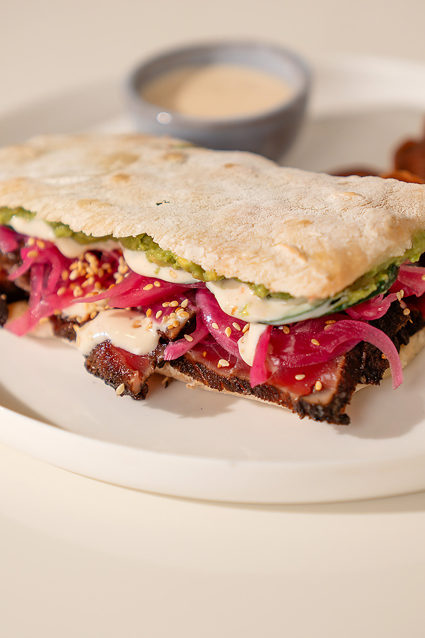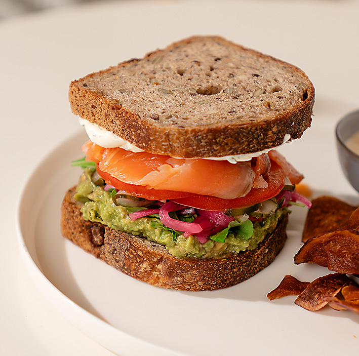 También cuentan con sándwiches como el de tataki de atún rojo, con alioli picante y pickles en pan ciabatta; de salmón ahumado, con palta y queso crema con eneldo; de pollo, con mozzarella de búfala y vinagreta de ajíes, y de queso halloumi a la plancha, con pesto, tomates secos y zucchinis asados. Además, ofrecen variedad de wraps, como el de salmón picante, con porotos, zanahoria asada y aderezo de cilantro; de vegetales asados, con stracciatella y espinaca, y el Caesar de kale y pollo.