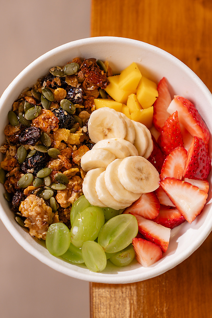 Completan la carta con un brunch que incluye, por ejemplo, el Avocado Toast, con pan de masa madre —elaborado con fermentación lenta y sin aditivos—, palta, rabanitos, pepino y huevo mollet; la tostada de salmón ahumado, con crema ácida, ciboulette, tomate cherry y pickles de cebolla morada; el sándwich de croissant, con huevo revuelto, mozzarella de búfala, tomate y rúcula; el yogur con granola, frutas de estación y miel, y el açaí bowl, con granola y frutas frescas.