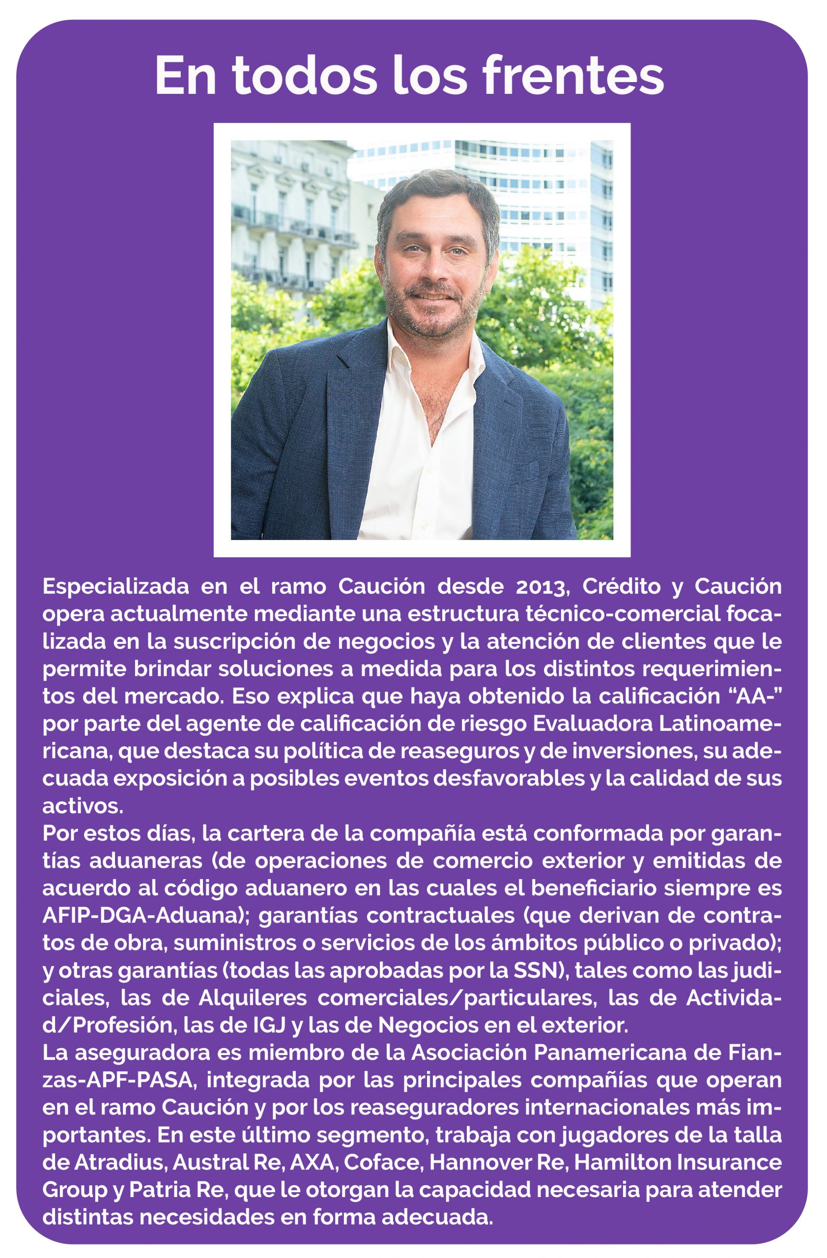 La Argentina todavía enfrenta desafíos macroeconómicos relevantes, pero se observan señales que permiten proyectar un escenario de mayor estabilidad hacia 2026, explica el gerente comercial de Crédito y Caución. “Los seguros de Caución presentan oportunidades concretas para acompañar el desarrollo de infraestructura, la inversión privada y los nuevos esquemas contractuales”, precisa el ejecutivo. Durante el último ejercicio, la compañía alcanzó un volumen de primas cercano a los $ 9.000 millones, lo cual la posicionó en el cuarto puesto del ranking de producción del ramo.